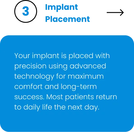 Your implant is placed with precision using advanced technology for maximum comfort and long-term success. Most patients return to daily life the next day.